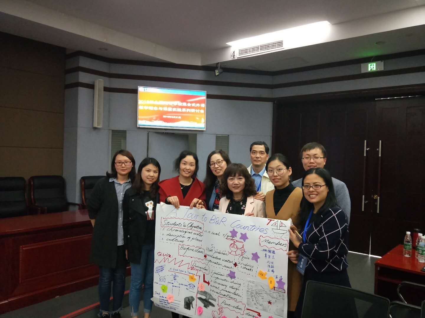 实践环节全体参会人员随机分成14个组进行PBL课程设计。当天上午各小组选定一篇课文,按PBL教学模式进行课程设计并完成一份海报,下午每个组派一位成员以说课形式口头展示该组的教学设计。所有小组口头展示完毕之后,现场专家及全体参会老师进行投票,选出当天最佳小组。黄睿老师代表其所在组做了口头展示,最终获得一等奖。