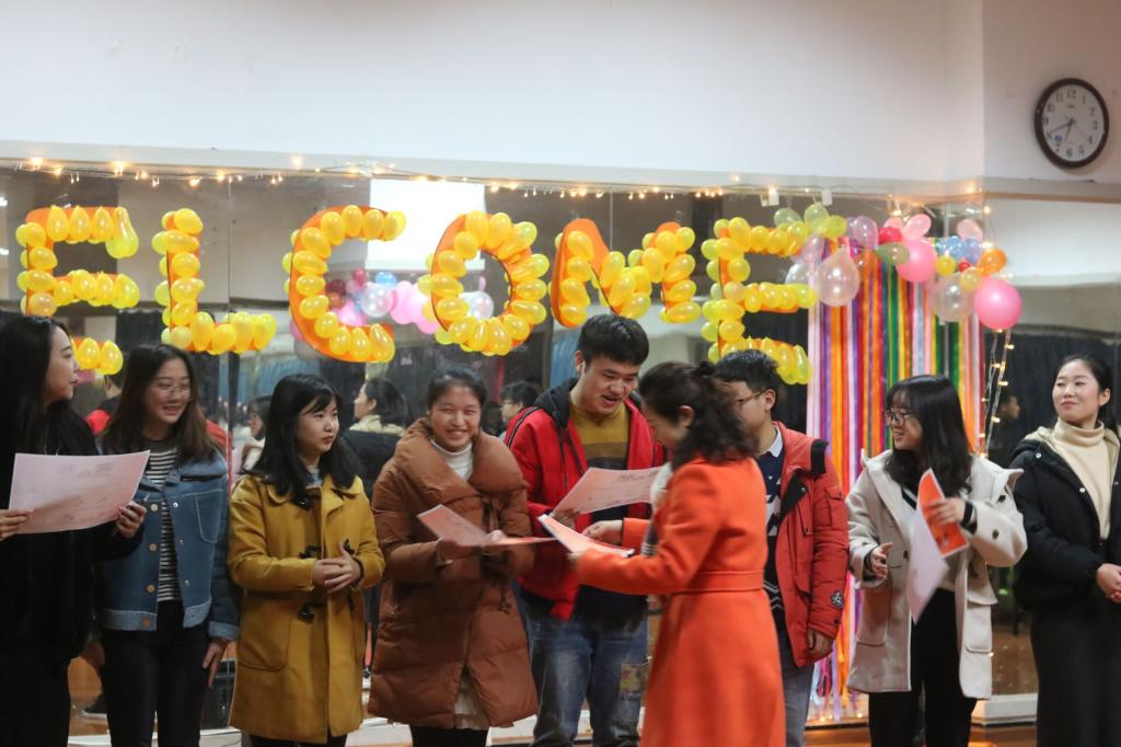 晚会还设置了颁奖环节,由傅静副经理和肖洁副书记为获奖的同学、寝室、班级、部门和团支部颁奖。晚会的最后由助班肖芳、主席团助理李月婷、分团委副书记周政分别给18级学弟学妹们送上了寄语,表达了各自的期望,希望学弟学妹们在今后的学习工作中突破自我,提高自己。