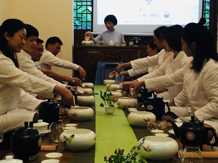 茶艺师首先对茶修以及行茶礼仪进行了介绍。随后进行了精彩的茶艺表演,茶艺老师从选茶、选茶具、选水、冲泡方法、品赏等方面详细讲解了茶艺及茶文化知识。配合着音乐、幻灯,参加活动的老师们也在茶艺师手把手教学下,融入茶的美妙世界,亲身体验了一把烹茶,最后品尝到了自己泡的茶。