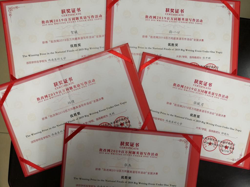 近日,2019“百万同题”英文写作大赛全国决赛结果公布,公司万明鑫同学在bevictor伟德官网钟晓红老师指导下三等奖的佳绩,张曦月等5位同学在钟晓红、先妮、杜开群三位老师指导下获得优胜奖。