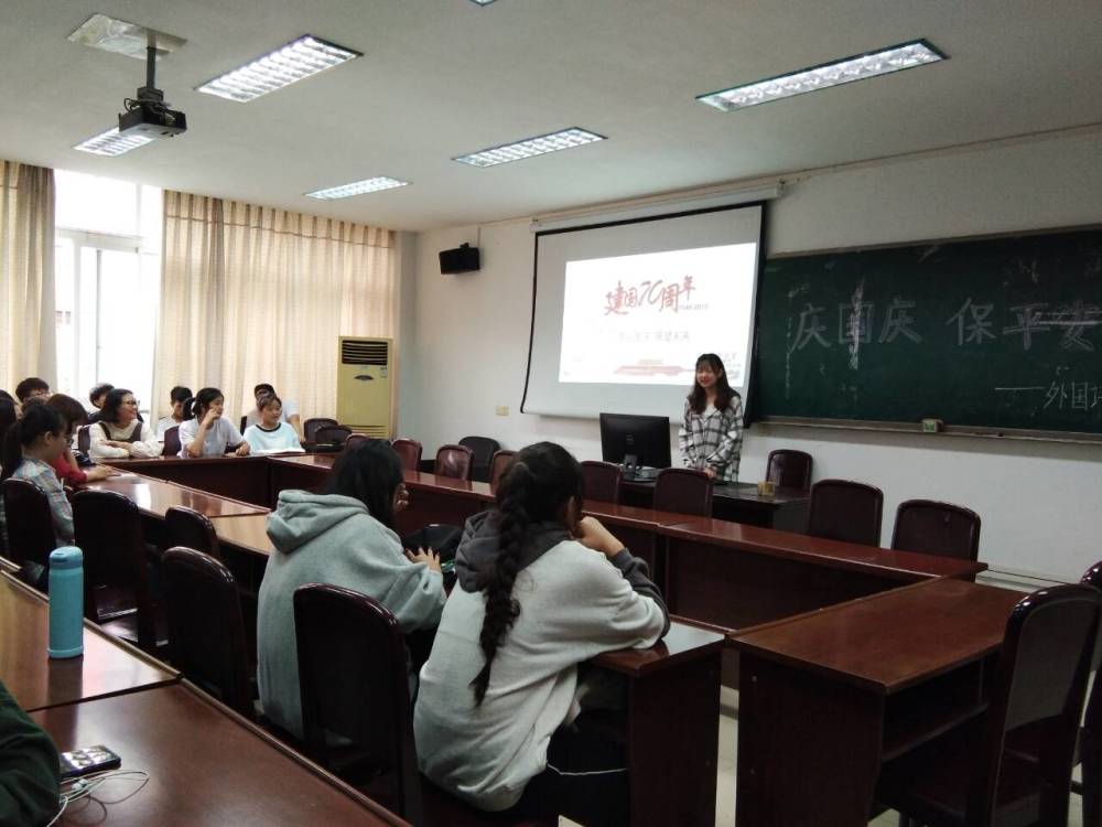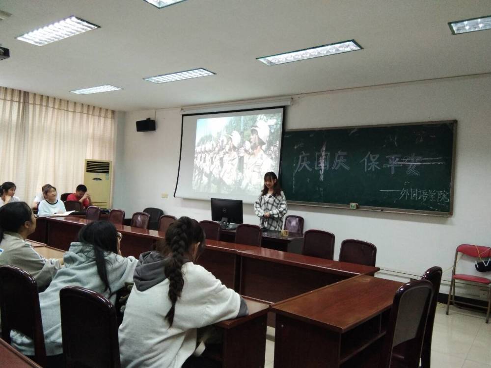2019年9月25日下午,bevictor伟德官网2018级英语1班在荟文楼会议室成功开展了“庆国庆、保平安”的主题班会。
