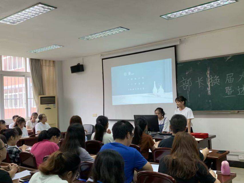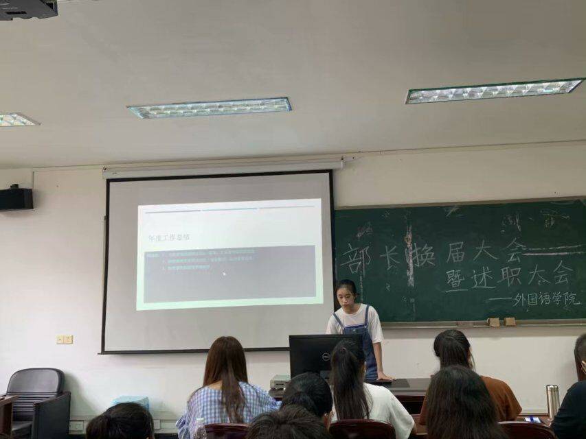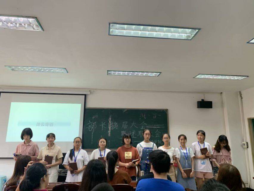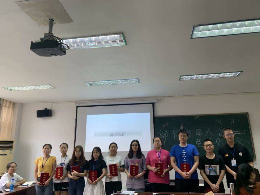 辅导员刘烨在发言中肯定了员工会各部门过去一年中的工作表现,鼓励新一届部长团成员更创新大胆地开展工作。大会最后进行了新老部长交接和为老部长颁发证明的仪式,在同学们的合影留恋中圆满落下了帷幕。