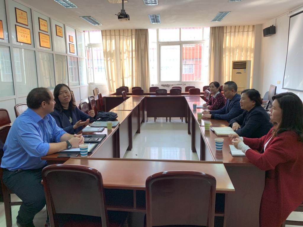 十月三十日上午十点半,四川美中友好志愿者项目经理满意到访bevictor伟德官网,与bevictor伟德官网副经理傅静,英语专业教研室主任李金海,国际交流合作处办公室主任杨珍,英语专业合作教师向冰以及Brian Scott进行了座谈。