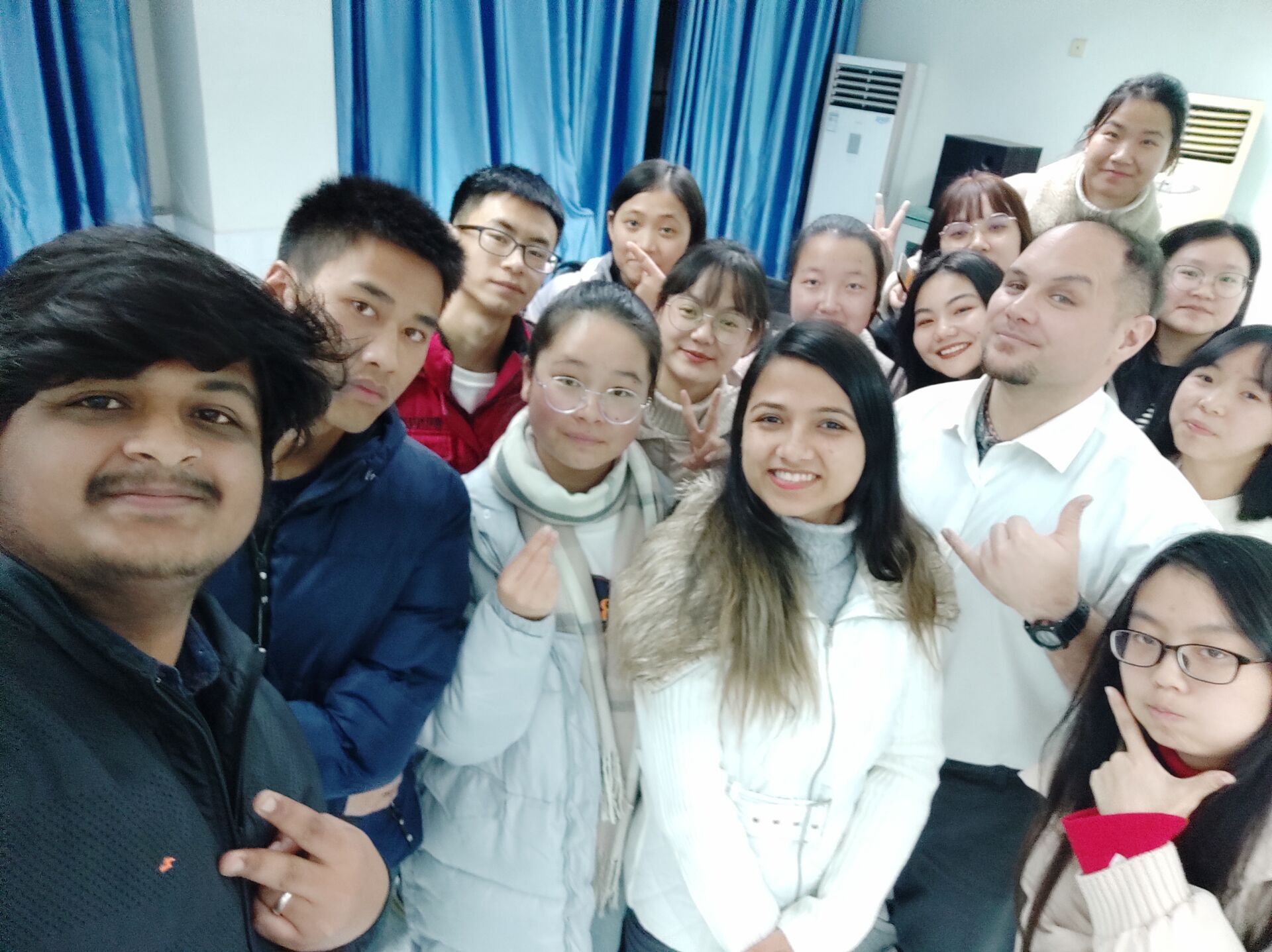活动分为“共同歌唱”(sing together)和“自由谈话”(open space talking)两个环节。首先是外教教唱经典歌曲“Auld Lang Syne”(《友谊地久天长》),并讲解歌词,讲述歌曲内涵和自己童年往事。之后分小组围绕新年主题进行自由交流,全程使用英语分享了自己的新年故事和愿望。此次活动为本年度英语角系列活动的最后一场,气氛温馨、热烈,不同专业、国籍的同学们为即将到来的期末考试互相鼓励,约定下学期继续相约英语角。