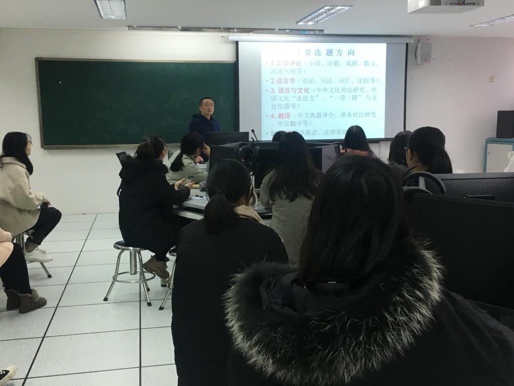 李金海主任向同学们说明了毕业论文工作的时间进程、导师情况和相关要求,强调了这项工作的重要意义,告知同学们务必以严肃严谨的态度对待论文写作。同时,也向同学们介绍了论文写作的注意事项和查阅英文参考文献的实用技巧。