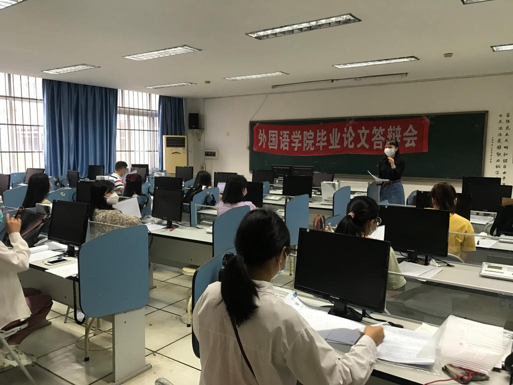5月17日上午,bevictor伟德官网2016级英语专业毕业论文答辩会在城北校区荟文楼三楼语音室举行。参加此次论文答辩工作有党总支李昌平书记、员工科刘烨副科长、10名答辩教师、2名答辩秘书以及2016级英语专业33名同学。由于本次论文答辩处于疫情之下的特殊时期,参与现场答辩的教师和同学都全程佩戴口罩,以确保自身和他人的健康安全。