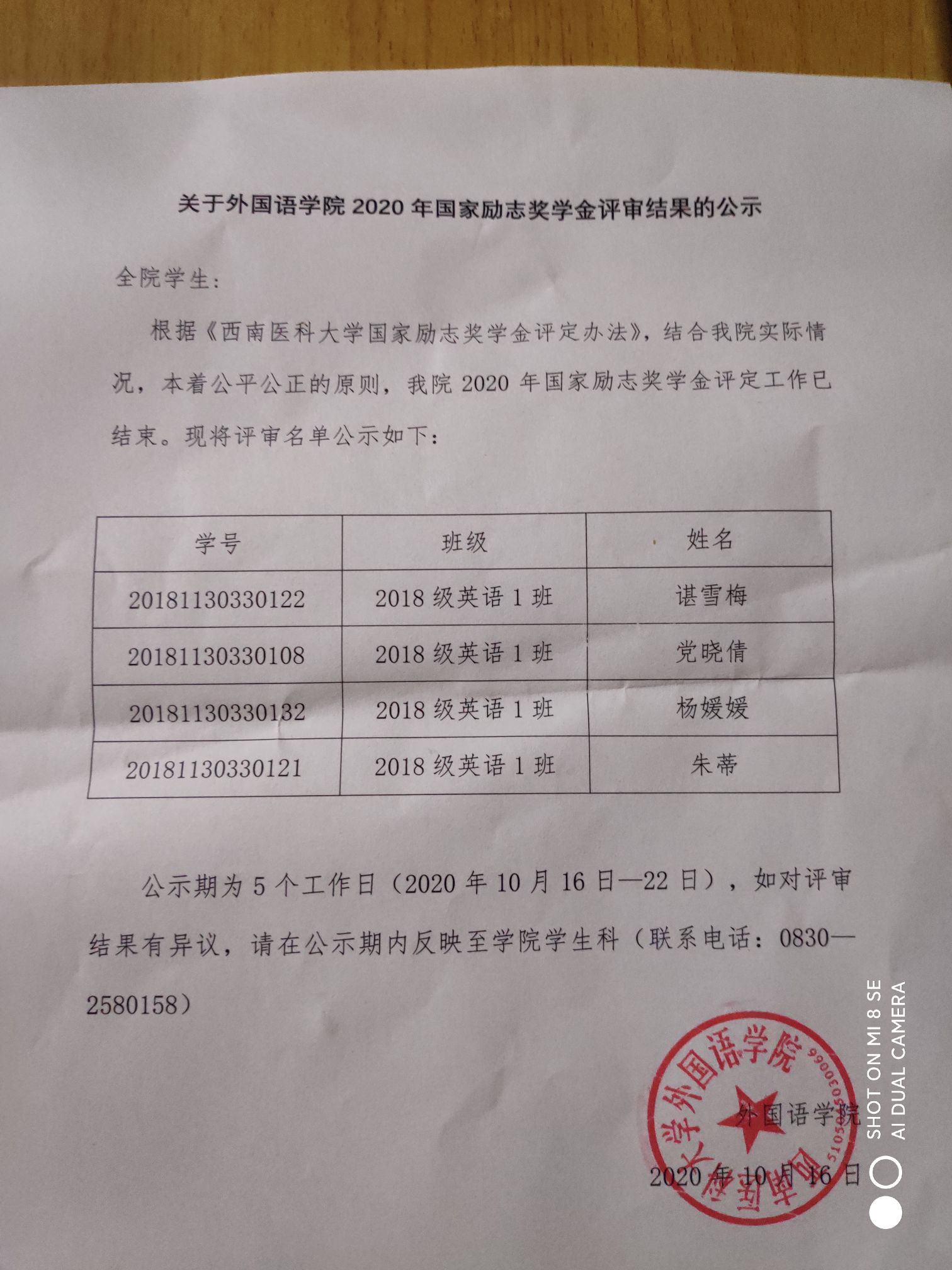 根据公司《伟德国际唯一官网入口国家励志奖学金评定办法》,结合公司实际情况本着公平公正的原则,公司2020年国家励志奖学金评定工作已结束。现面向全院公示5个工作日,如对名单有异议,请于公示期内(10月16日—22日)向公司反映,电话:0830-2580158。