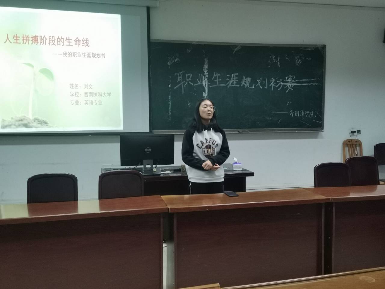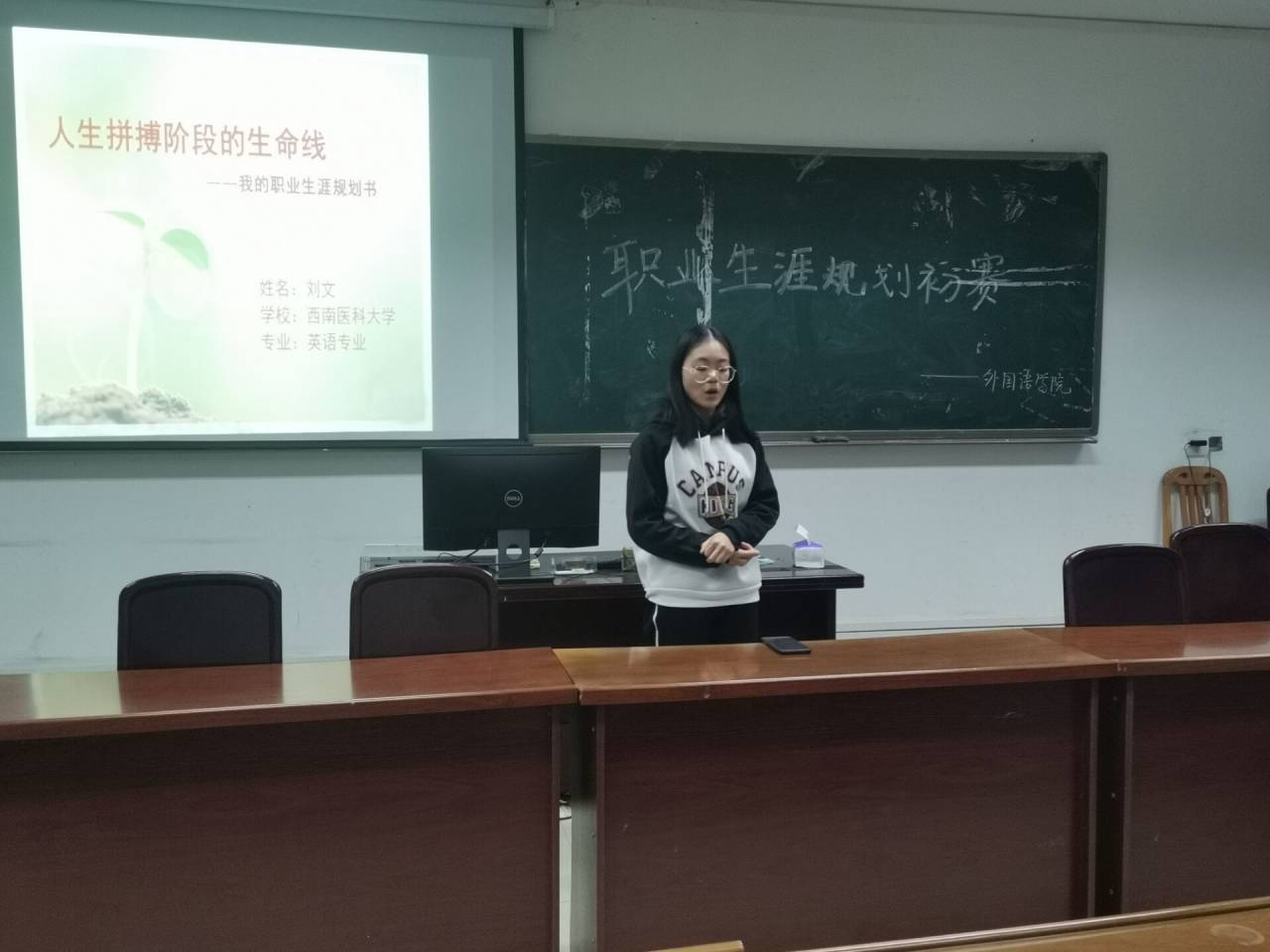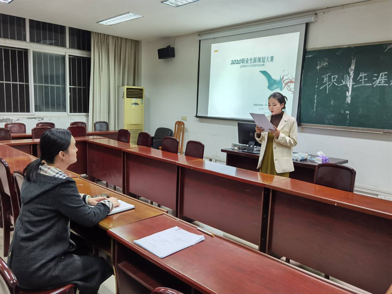通过前期班级推荐和个人自荐,结合个人《职业生涯规划书》撰写,有5名英语专业的选手进入了现场比赛环节。党总支副书记邓盛木、员工科副科长刘烨担任现场评委。