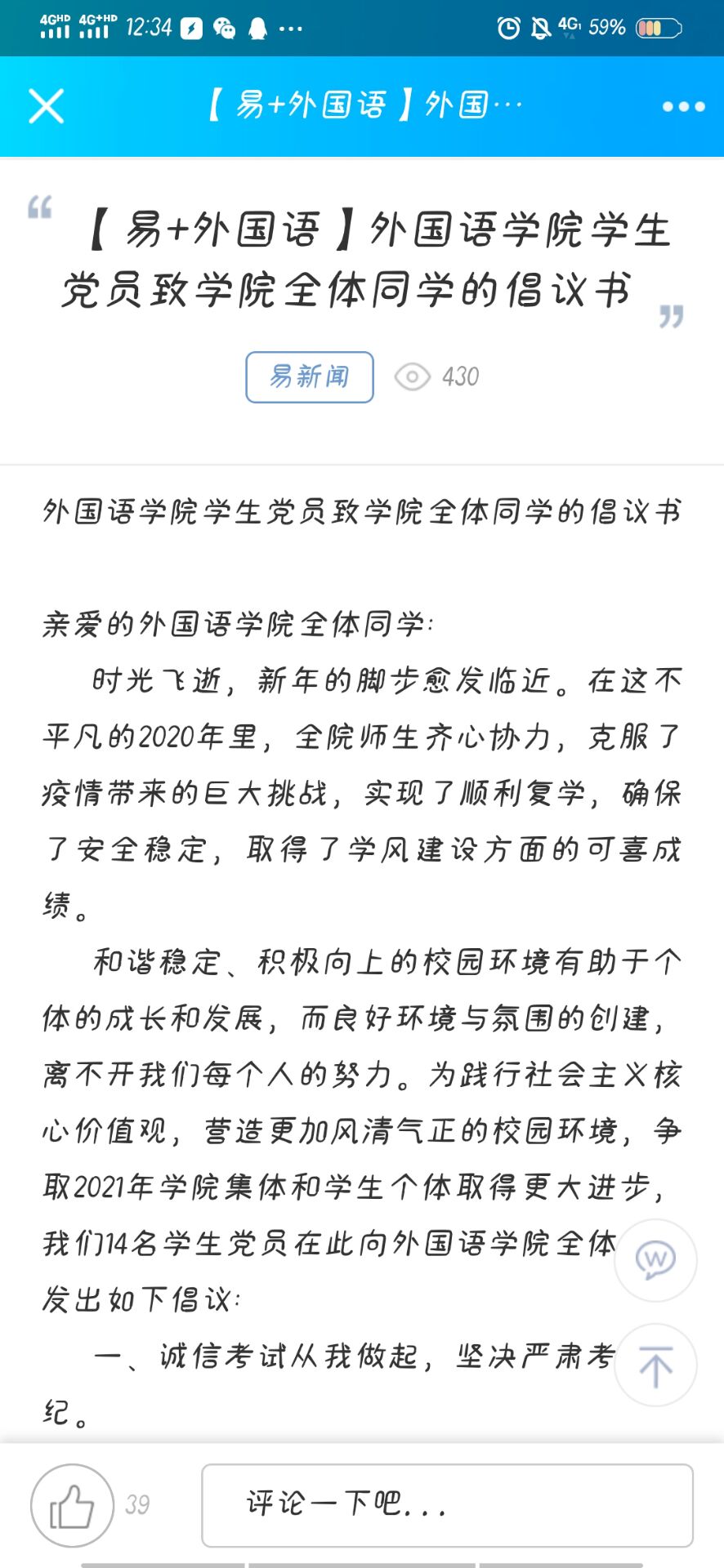 活动通过党支部活动,结合易班、“外院青年说”微信公众号平台,线上线下开展了多形式的教育活动。全体员工党员在公司易班平台、“外院青年说”微信公众号发出《bevictor伟德官网员工党员致公司全体同学的倡议书》,呼吁全院员工坚持诚信考试,维护考风考纪;历行勤俭节约,杜绝虚荣浪费;抵制社会不良风气,树牢廉洁自律意识,自觉推动公司学风建设和营造风清气正的校园环境。此外,全体员工党员、入党积极分子还积极参加了公司2020年党的知识竞赛活动。