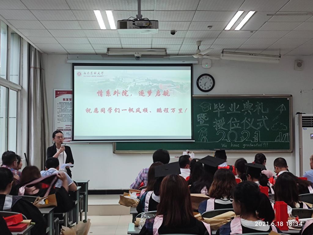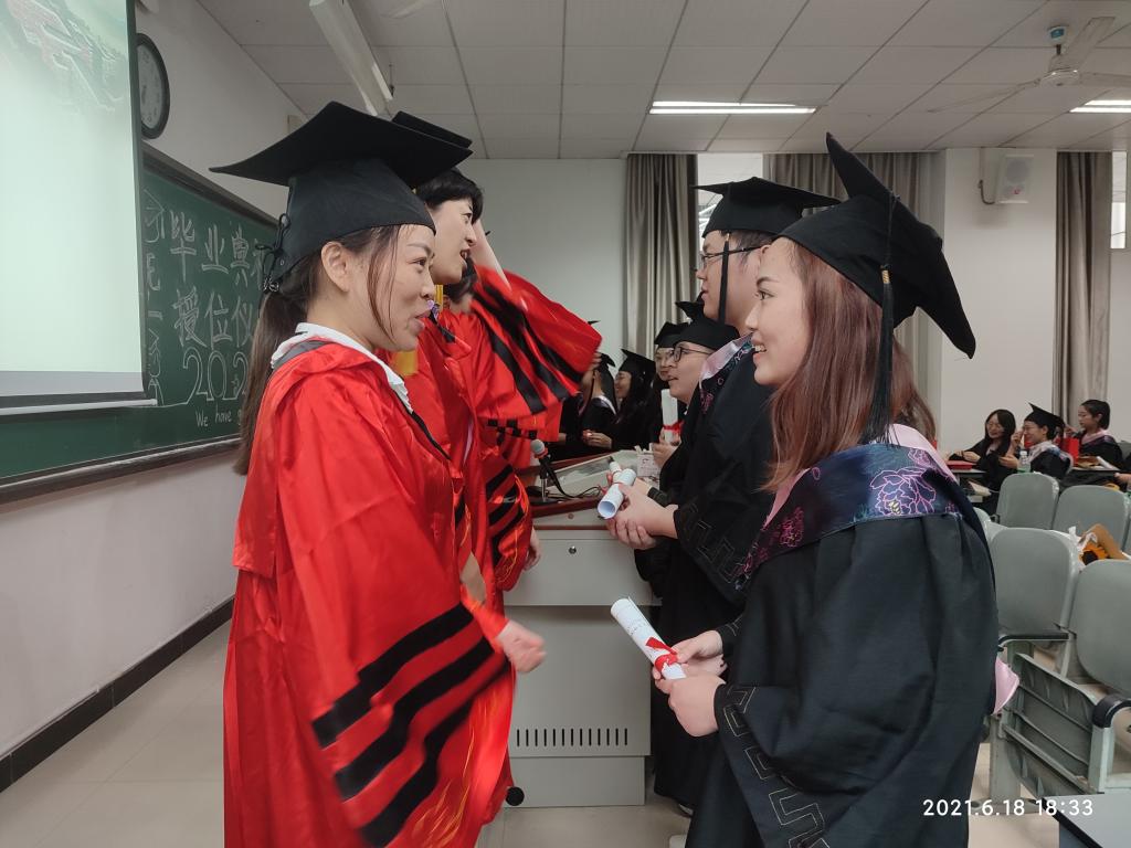 6月18日下午,bevictor伟德官网在海川楼203教室举行英语专业2021届毕业典礼暨授位仪式。公司党总支副书记邓盛木担任主持,公司领导、教师代表及全体毕业生参加活动。