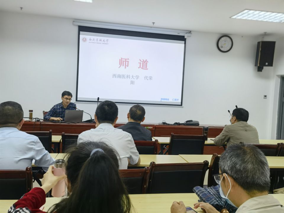 代荣阳以“师道”为题,从大学的使命是什么谈起。从培养人才,何为人才以及如何培养人才着手。希望教师党员能做到修身、齐家、治国、平天下,并且谈到作为一名高校教师应该如何修身,修身修什么及修身有何作用。