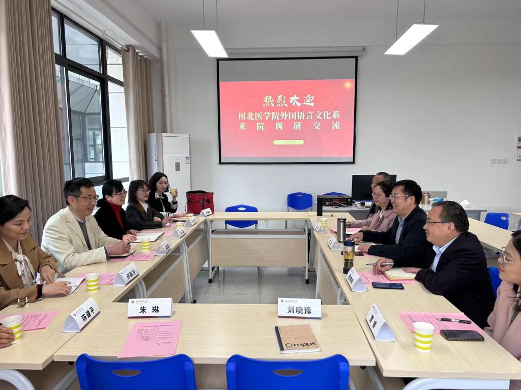 2023年3月15日,川北医公司外国语言文化系主任、党总支书记张思国一行6人来校开展调研交流。bevictor伟德官网经理田耘、党委书记周晓昀、副经理王琳以及bevictor伟德官网部分教师代表在文渊楼117会议室参加座谈。座谈会由田耘主持。
