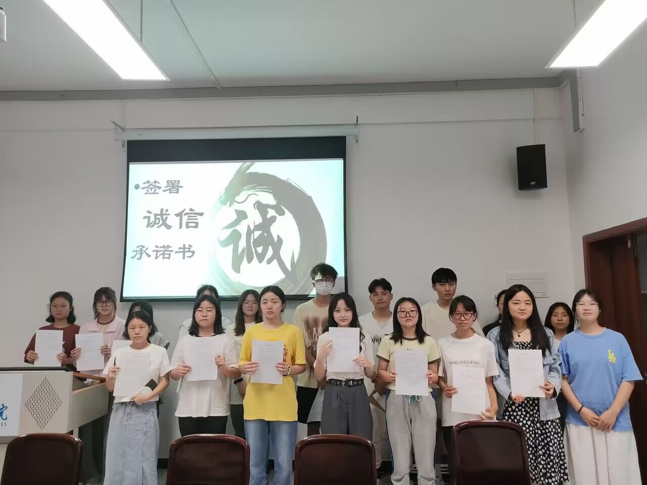 活动中,主持人首先引入“诚信”话题请同学们畅谈自己的理解和认识。随后结合资助工作中有违诚信的真实案例,分析不守诚信行为对自身和社会的危害,要求接受各级各类资助的同学在申请过程中就必须以诚信为前提,成功办理助学贷款的同学们更要认真履行自己的还贷义务,做到权利与义务的统一。最后,主持人邀请同学们发表自己对于诚信的感悟并签署诚信承诺书。