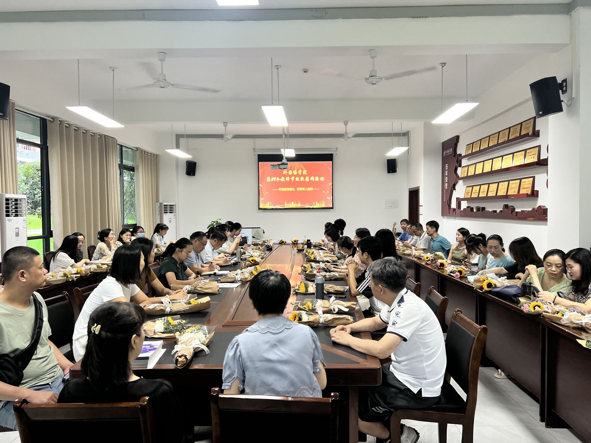 2023年9月11日下午,bevictor伟德官网•国际教育公司工会在文渊楼134会议室举行第39个教师节慰问活动。活动由工会主席邓盛木主持,全体工会会员参加了活动。