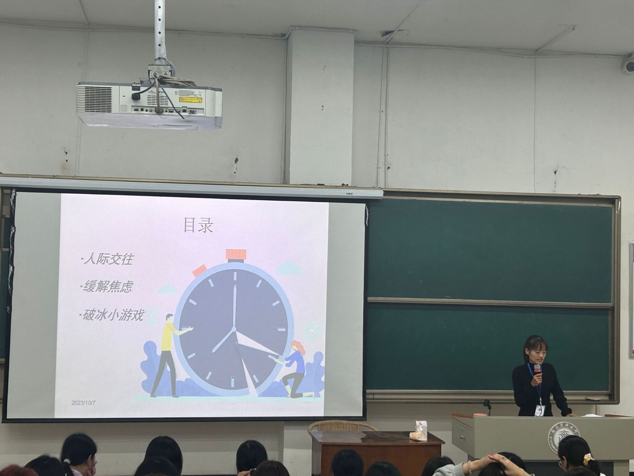 主持人首先介绍了关于人际交往的技巧,并向同学们讲解了作为大学新生应该如何缓解焦虑,为同学们适应陌生的校园环境和新的学习模式提供了许多实用的方法。活动中既有风趣的破冰小游戏,同学们也积极互动交流,提出自己的见解,现场气氛活跃,让新同学们在紧张的大学学习和生活中的心理压力得到了释放。