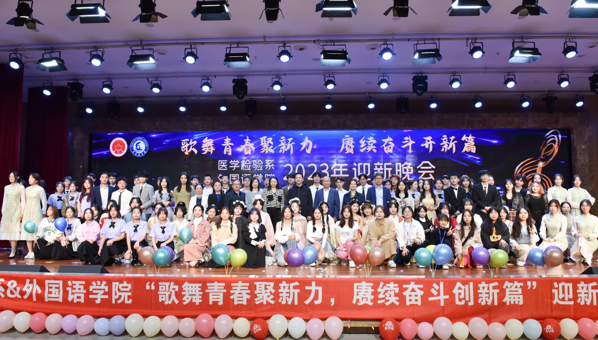 10月21日晚,bevictor伟德官网在第一学术报告厅举办以“歌舞青春聚新力,赓续奋斗创新篇”为主题的迎新晚会。本次晚会由bevictor伟德官网与医学检验系联合举办,邀请了公司教师工作部、人事处处长刘文胜、副处长余郭莉、员工工作部副部长易娟、团委副书记刘玲爽参加,两院系领导老师共500余名师生参加了活动。