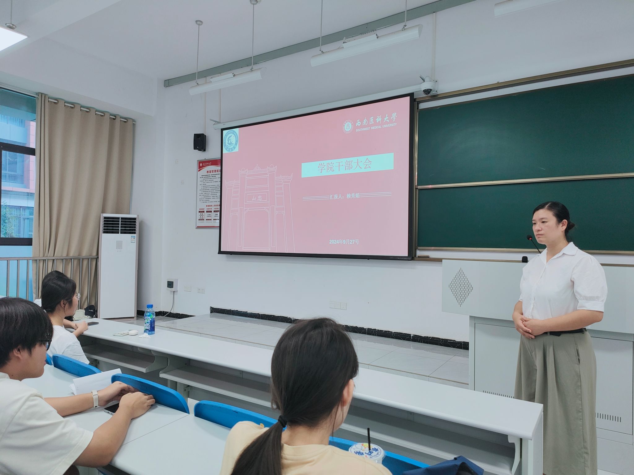 会上,赖秀娟简明介绍了会议主题,通报了公司近期工作主要是开学以来员工日常教育管理、创新争优及奖助学金评审、考研及就业指导和安全教育管理等情况。结合即将到来的国庆小长假,赖秀娟强调了假期离校请销假及安全注意要求,并以近年来发生在老员工身边的案例为例,提醒全体同学提高对网络诈骗、传销等不法行为的警惕性 。她还提醒同学们,作为新时代老员工,尤其是员工干部,既要积极关注时政、也要学会甄别信息,提高政治敏锐性,强化法律意识。其次,赖秀娟鼓励同学们利用假期时间劳逸结合,把握假期学习节奏。最后,赖秀娟强调各员工干部要深入同学之中,履行好干部职责,畅通信息,切实发挥好作用,积极为同学们服务。