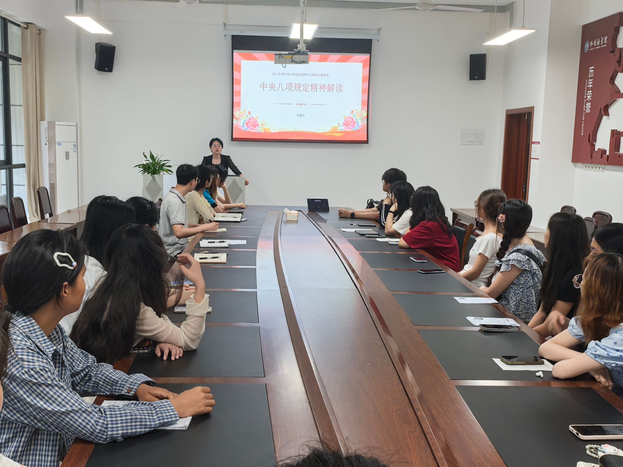 邓盛木结合自身学习、实践经验与思考,以“中央八项规定精神解读”为题进行党课讲授。讲授中,她以问答形式,联系员工党员的学习、生活、校园活动开展等,对如何理解和践行中央八项规定精神进行了深入浅出的分析和详细阐述。