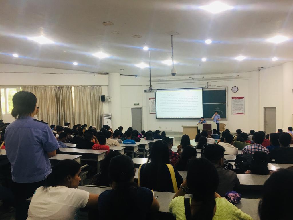 2019年6月5日下午5点,伟德国际唯一官网入口城北校区鸿文楼101教室迎来了一群最可爱的人,他们是来自泸州市出入境管理支队,泸州市公安局交警支队及龙马潭区红星派出所的民警同志们。他们为公司全体在校职工举行了一场交通知识和安全法规的讲座,讲座现场座无虚席。国际教育公司经理田耘及全体职工辅导员参加了本次讲座。