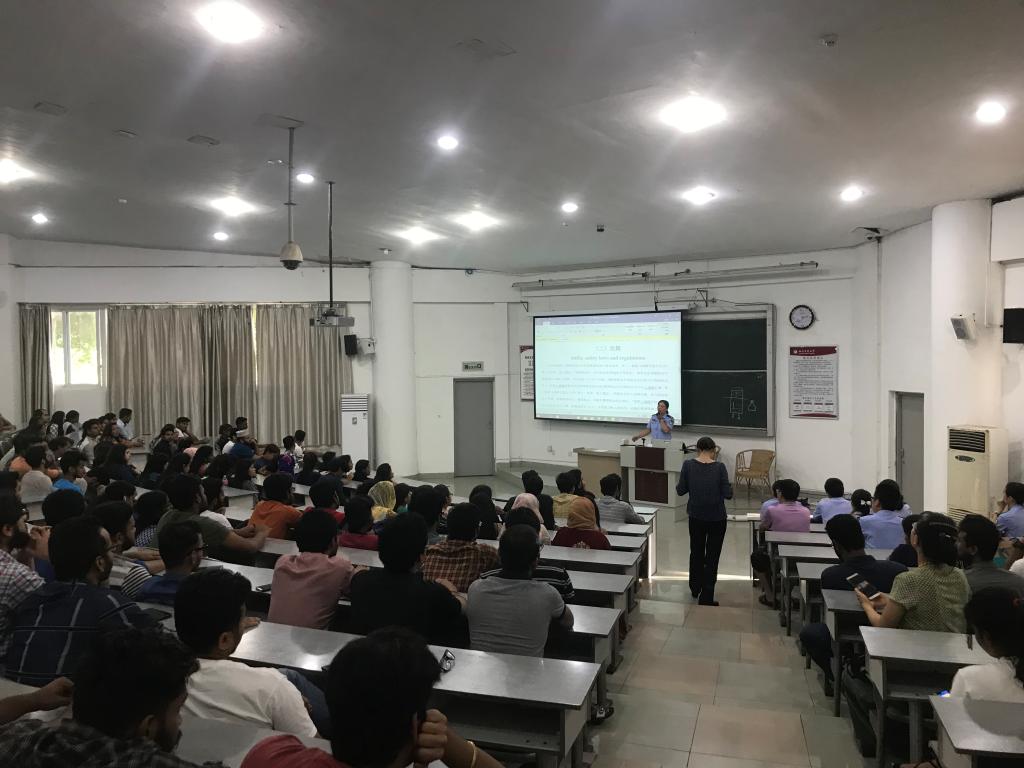 来自泸州市公安局交警支队的张威警官首先为师生们带来了中国交通规则的详细解读,根据中国《道路交通安全法》的内容,详细解释了驾驶机动车以及非机动车需要遵守的交通安全条例,以及违反后会受到的处罚。