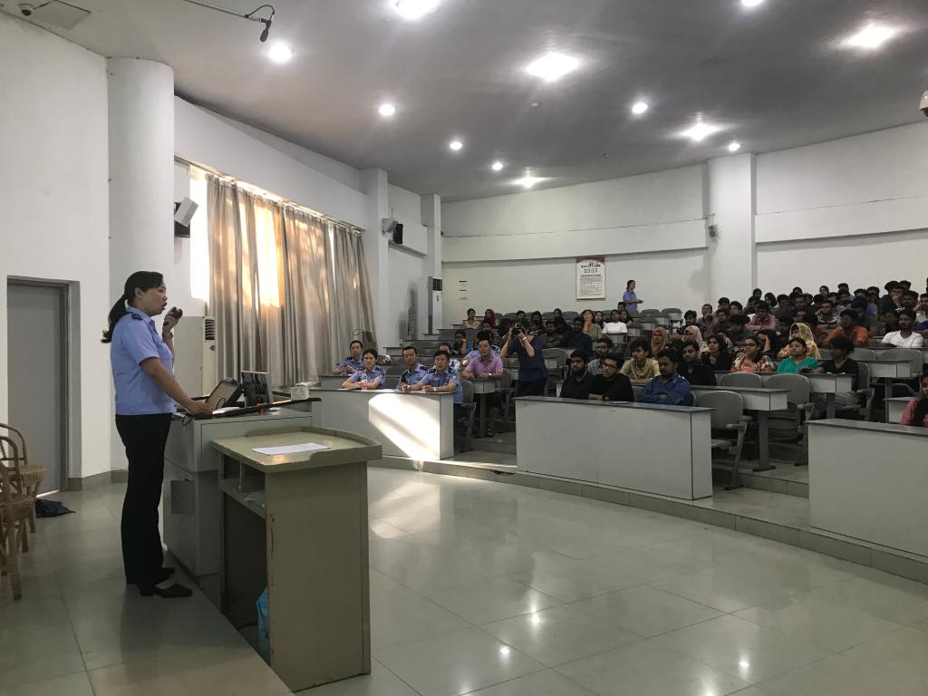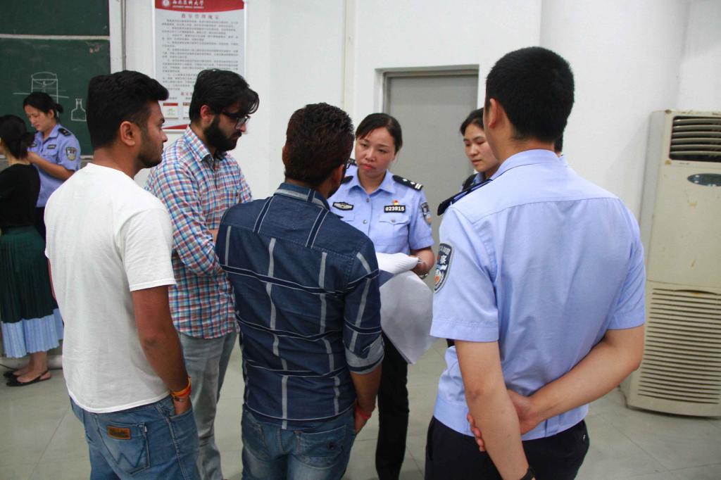 讲座开始前,泸州市出入境管理支队的张军梅副支队长用一口流利的英文向同学们介绍了本次讲座的重要性,希望同学们认真学习,提高交通安全意识,并逐一介绍了到场的民警同志。
